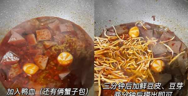 烹饪技巧:鸭血、豆芽、豆皮要选好,掌握麻辣鸭血的烹饪过程,8分钟出锅。