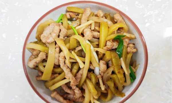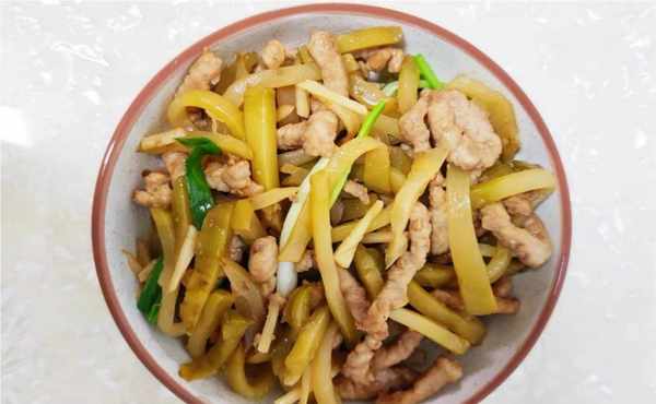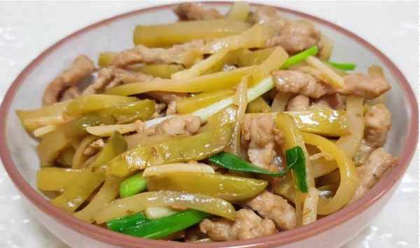 蒜苗炒手撕肉是一道超级好吃的菜。榨菜很脆很好吃,咸淡适中,手撕肉很嫩。蒜苗的叶子有一种香味,可以刺激我们的味蕾,让我们的食欲越来越好。不如吃大鱼大肉,早吃早受益。