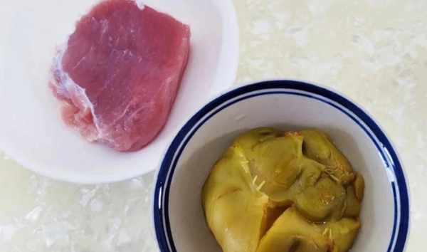 配料表:选择320克左右的里脊肉(里脊肉是猪肉中最贵的部分,肉的脂肪含量很低,肉质很软很滑。这是炒猪肉碎肉的首选。剁碎的猪肉需要提前腌制入味),选买榨菜200克左右(市面上有袋装榨菜和散装榨菜,我家不喜欢吃太辣太咸的榨菜,榨菜一般用来炒菜),买生姜五片,料酒少许,植物油少许,淘米水少许,蒜苗一个(或者选择韭菜,一定要选择新鲜的青蒜苗,蒜苗有一种独特的香气,可以刺激味蕾并使食欲更好),糖半勺,盐少许,鸡精半勺,味精,原味酱油半勺,生抽半勺,淀粉少许,其他。