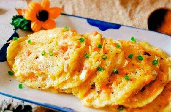 食材:土豆2个、胡萝卜半根、洋葱适量、鸡蛋2个、葱半根、盐适量、胡椒粉少许