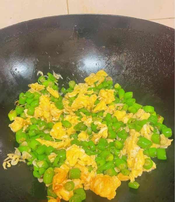 第六步:倒入适量清水,快速翻炒几下,倒入煎好的鸡蛋,加盐、鸡精和胡椒粉,喜欢吃辣的朋友,也可以加一勺老干妈,一炒就平了。.