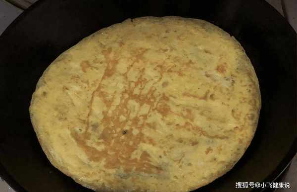 第六步:准备平底锅,把所有的蛋液铺在锅底,蛋液稍微变黄,把蛋壳翻过来煎一下,把蛋壳切块待用。
