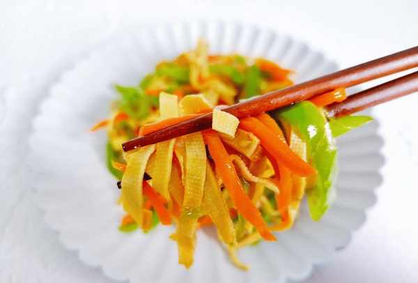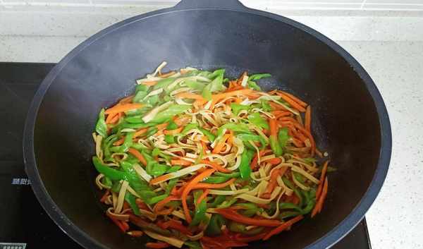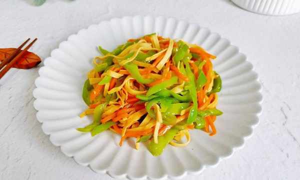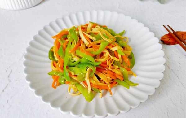 油炸胡萝卜和胡萝卜片是餐厅的必备品。整道菜的颜色非常醒目。红胡萝卜、青椒和黄甜椒。几种食材搭配,营养均衡,吃起来很满足。胡萝卜富含维生素A和B,含有丰富的胡萝卜素,多吃可以保护视网膜,改善视力,而且千粒中的蛋白质和卵磷脂都不低,而且钙的含量很高,可以起到一定的帮助作用。为家人补钙,不要吃肥肉和肥肉。