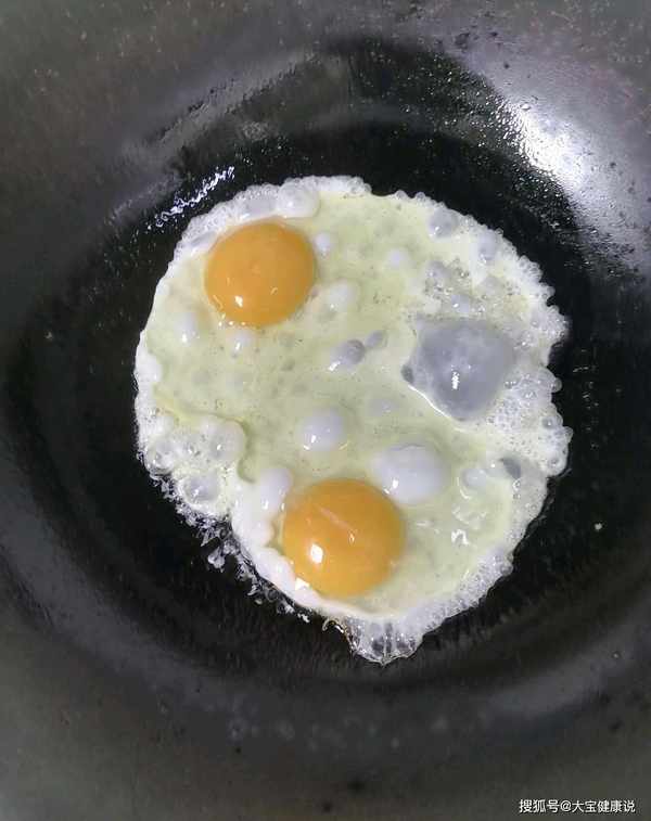 第一步:锅中加入食用油,油烧一会,撒少许盐,打入两个鸡蛋入锅,将荷包蛋翻面煎好,盛出待用。
