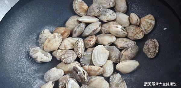 第二步:将蛤蜊用盐水浸泡,用热水焯一下,捞出蛤蜊肉,去掉蛤蜊肉中的杂质,烧开一锅热水,加入少许料酒,将蛤蜊焯水。迅速舀出放在一边。