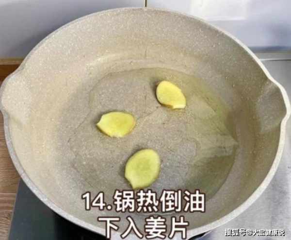 第五:姜切几片,香葱切小葱,锅底放油肥,放几片姜在上面略炒。
