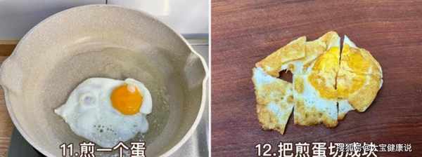第四步:锅底慢慢烧热,打入两个鸡蛋入锅,慢慢煎至金黄,取出放凉,切成小块,备用。