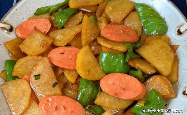 烹饪技巧:炸薯角配青椒肠是一道特色家常菜。食谱很简单。土豆本身含有一些淀粉。也可以用热水烫一下,味道也不错。这道菜需要热油冷锅。先将蒜末和香肠片炒熟,再加入土豆片和青椒,配上事先准备好的调料,还可以加少许醋提味。