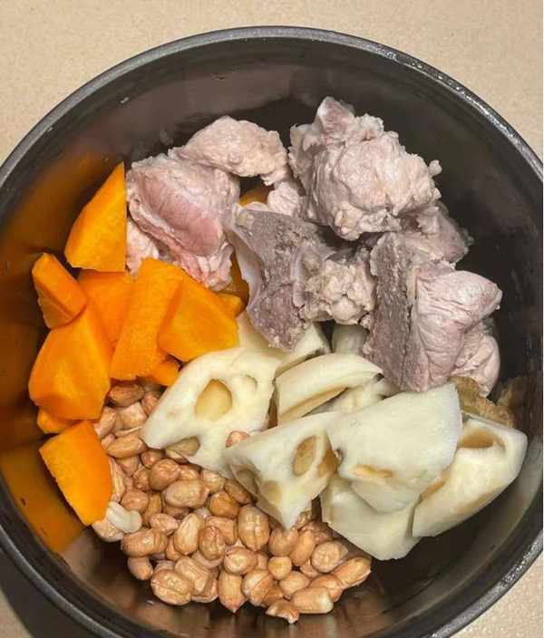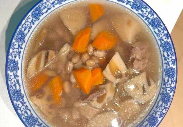 胡萝卜莲藕花生猪骨汤是广东人爱喝的一道好汤。吃起来不油腻。能为身体补充能量,滋补强身,调理气血,提神醒脑。早点吃,早点享受。