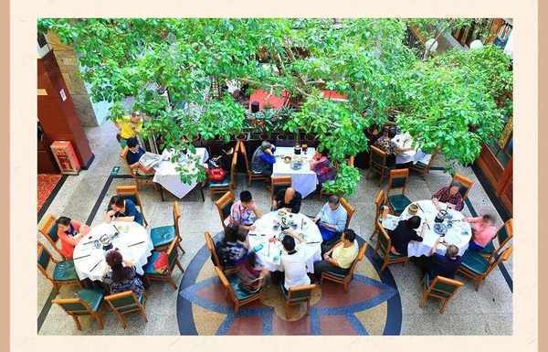 不仅是点菜,老茶客与服务员的默契更体现在“私家位”上。广州酒家文昌店的二楼光线明亮,视野开阔,可俯瞰一楼中庭水池和细叶榕树的风景。每天早上8点,许多茶客都喜欢在2楼的珠海厅,或者对面榕树树荫下叹茶。久而久之,有的老茶客便习惯将这些位置划为“私家位”。偶尔来迟了,“私家位”被占了,老茶客宁愿守着等位腾出,才开始愉快叹茶。