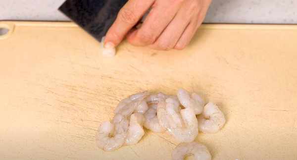第2步、接着就是先处理一下虾仁,在虾的背部片开,这样方便去除虾线,全部处理好后,放入碗中加入适量的食盐,浸泡一下虾仁让它泡发,有时间的话可以泡久一些20分钟左右。