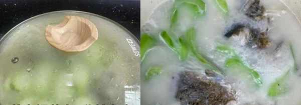 5:倒入适量开水,这样才会是奶白色,中途放入一些姜片,盖上锅盖炖煮一会儿,让汤汁煮至乳白色。