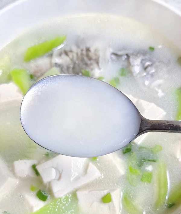 丝瓜鲫鱼豆腐汤是营养又补钙的鲜汤之一,鱼肉肉质鲜嫩,丝瓜非常清甜,汤汁喝起来更鲜更甜美,营养极高,补充钙质和蛋白质,暖身又暖心,保证我们的身体健康,顺利度过今年。