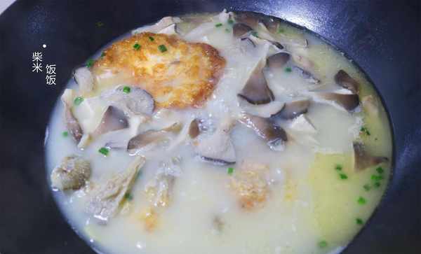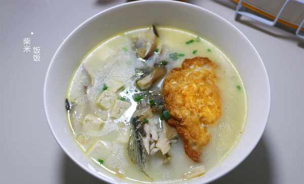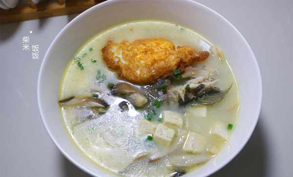 【食材】鲫鱼、豆腐、平菇、鸡蛋、香葱、姜、盐、胡椒粉