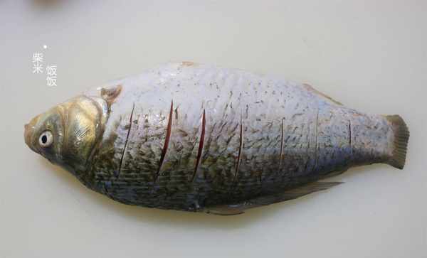 1,鲫鱼处理干净,两面切花刀,方便入味。