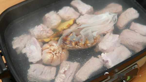 排骨、姜、白胡椒、带皮大蒜扔进锅里,加足够的清水开煮,转小火焖1小时,出锅前5-10分钟放盐就行。