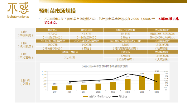 不难看出,最大的市场依旧在B端,C端发展还需要比较长的过程。创业者做预制菜要先选最大的市场。