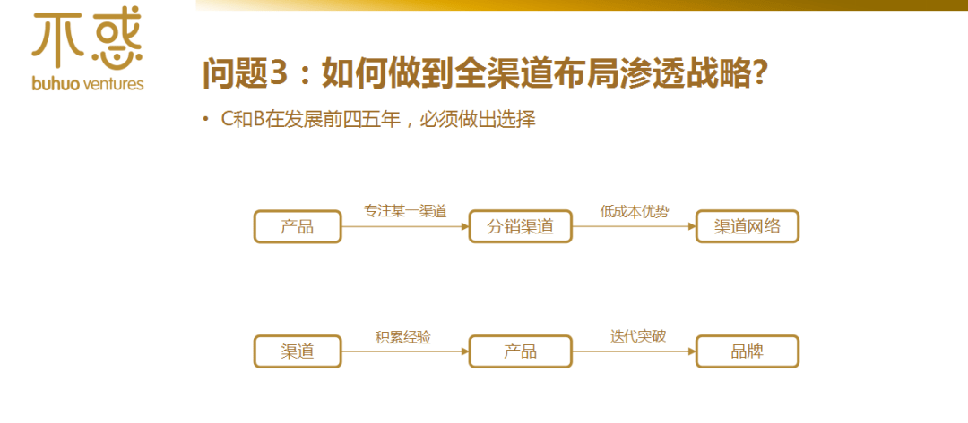 创业者该如何选择渠道呢?一个初创企业在创业前几年,必须作出“主攻什么市场”的选择,如果选择主攻做产品,那一定是通过各个渠道去分销,最终形成一个销售网络。如果选择先铺渠道,渠道占领之后才能够立得住,最后进化成为非常优秀的产品公司。这是殊途同归。所以,创业初期,必须集中精力打一端,而不是到处乱铺。