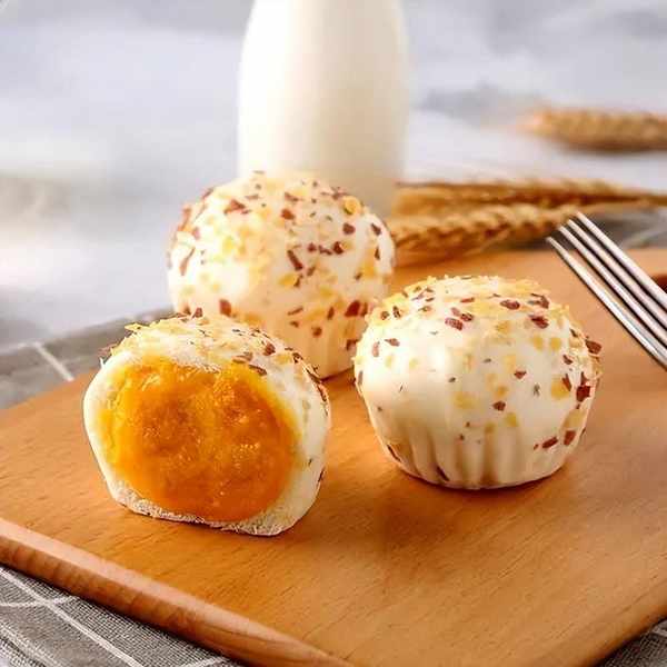 流沙包轻轻一撕,流沙馅料倾泻而下,麦香浓郁,口感软韧还带有沙沙的口感,甜与咸味交融。