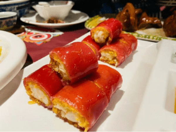 爽滑的粉皮里包裹着鲜虾,外层粉皮滑韧,中间炸得金黄酥脆,薄脆中带着一丝鲜甜。