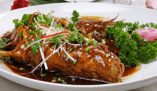 红烧鮰鱼,2018年被武汉楚菜协会,评为“振兴楚菜的第一菜”。2011年,武汉的非遗。有“不吃鮰鱼,不知鱼味。”的说法。清人叶调元在《汉口竹枝词》里说:“鱼暇日日出江新,鳊鳜鮰 班味绝伦。独有鳗鲡人不吃,佳肴让与下江人”,即是证明。