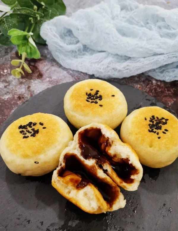 2、锅盔:陕西地方名菜。饼又大又圆,像锅盖,故名锅盔模。灰块外表凉爽,内里层次分明,红糖味浓郁。甜滑而不腻。很不错!