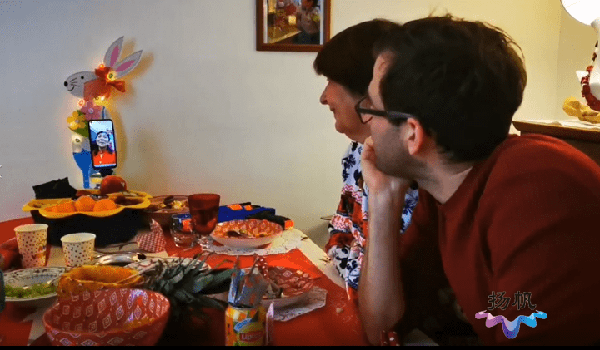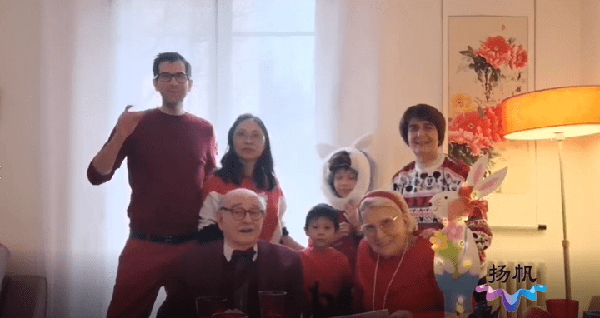 很快,狮子头、扬州炒饭、菠萝咕咾肉等菜肴相继上桌,两位孩子也没闲着,忙着布置春节造型、做纸兔子,这过年的气氛可以说是满满的。当新春的钟声敲响时,本杰明还拨通视频电话,给扬州的“丈母娘”一家拜年了。