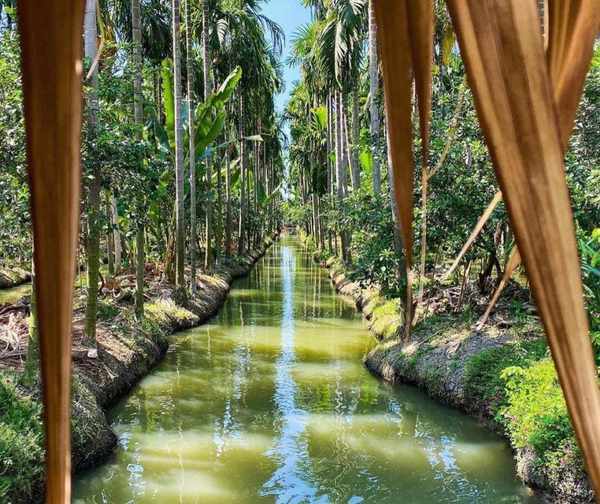 咖啡馆里有一条水路。可以坐船拍照。水道两旁高大的树木特别适合拍照!