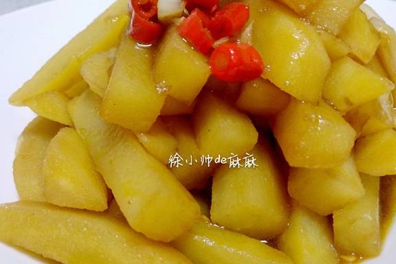 在我家土豆是易耗品,每个星期都要买上3-5个备着,因为土豆的做法实在是很多了。一直以来我家的土豆都是炒各种土豆丝,青椒土豆丝啦,醋溜土豆丝啦,等等,炒丝的话都是擦丝。因为对于刀工不好的我来说,土豆丝实在切的不咋地,自己切的话就是切土豆条。红烧土豆条,酸辣土豆条,都是很受到家人喜欢的。