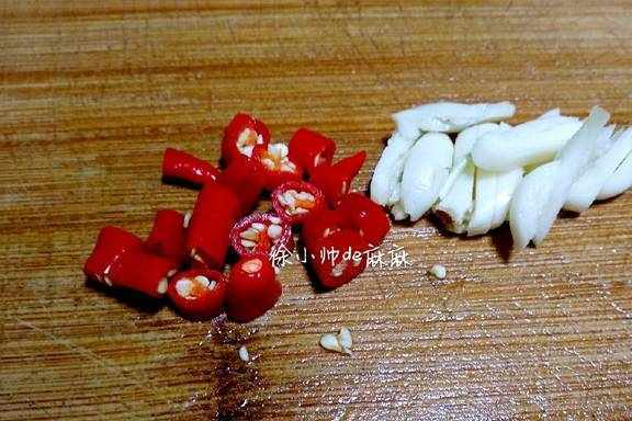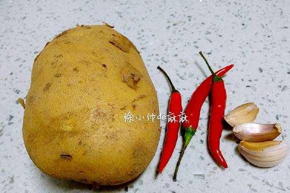 1、食材准备;土豆一个,削皮,切成宽一厘米的粗条,漂洗干净沥干水。小米辣几个洗净切碎。大蒜2瓣,拍扁切碎。