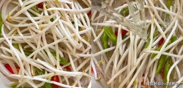 第四步:豆芽捏好颜色,洗净沥干表面的水,准备好焯好的牛肉卷和配菜,开始做这道泡菜牛油芽汤。