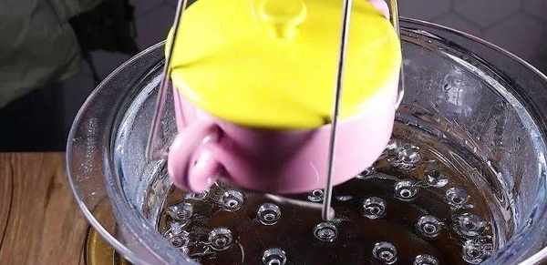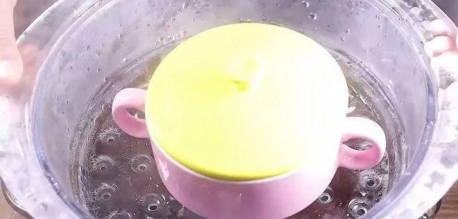蒸碗盖上盖子后,奶锅烧水,水开放入蒸碗。