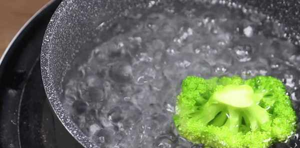 奶锅烧水,水开放入西兰花,焯水1分钟,捞起。