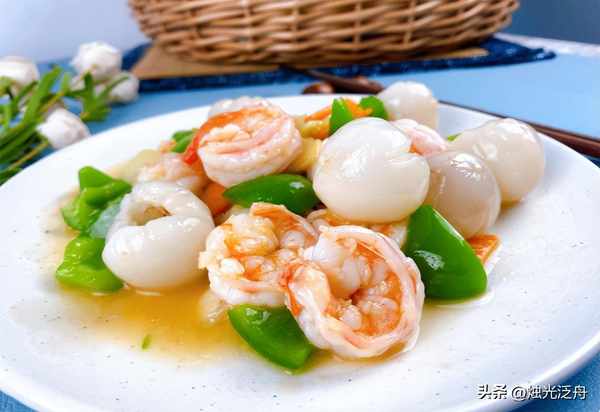 荔枝、虾仁、蒜末、青椒、胡萝卜、生姜、胡椒粉、盐、鸡精、淀粉、食用油。