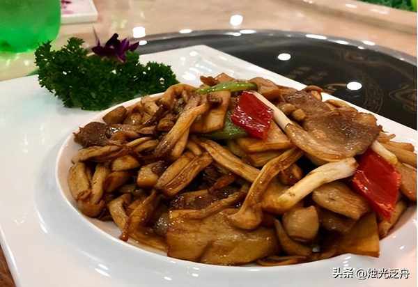 干野生菌100克,五花肉300克,红椒圈20克,青椒圈20克,蚝油25克,筒骨汤300克,盐,味精,料酒,生抽,白糖,白胡椒粉各适量,葱姜10克。