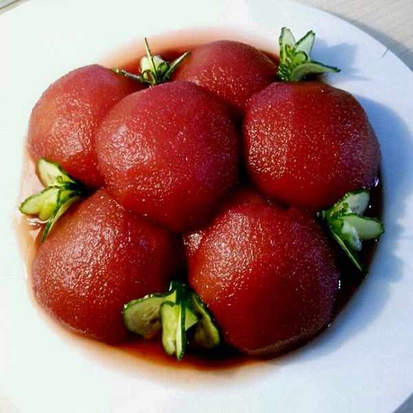 8.倒入碗中后将腌制后的樱桃连同汁一起倒入