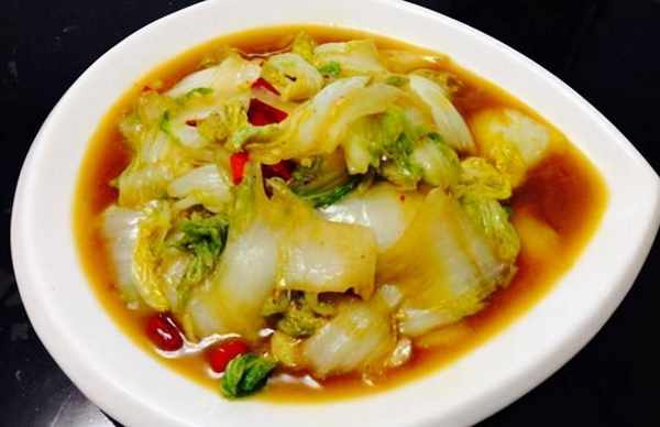 5.炒至白菜软烂,放少许的白糖、盐调味即可出锅。