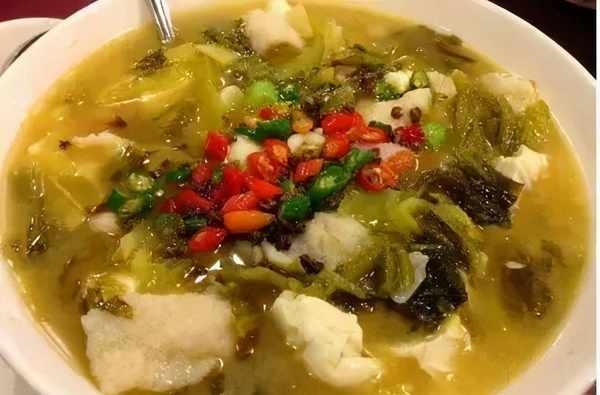 2、净锅里放油烧热,先下泡姜片、酸菜块、泡辣椒节、豆瓣酱、姜片和大蒜炒出香味,掺适量的清水烧开后,加盐、白糖和味精,待煮出酸香味时,下入鱼块煮熟,捞出来放到垫有豆花(提前煮透)的窝盘里;