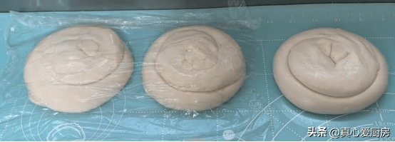 先在案板上抹一层薄油,取出面剂,抻长按扁,擀成长方形,再涂抹一层油酥,从一头卷起来,卷好以后再次抻长,再由一头卷起来,盖上保鲜膜醒面十分钟。