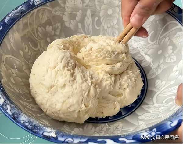 首先准备400克面粉,加一勺盐搅拌均匀,用260毫升常温水搅拌,一直搅成一个偏柔软的面团