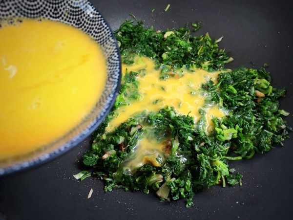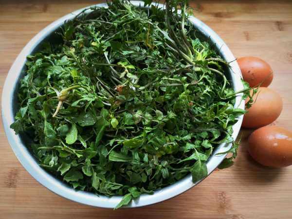 食材:荠荠菜适量、鸡蛋3个、葱花少许、盐一勺。