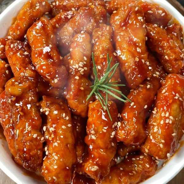 锅中倒入适量的油,油温6成热的时候,逐一的放入肉条,不能一下放进去一碗,会粘在一起。炸至金黄色捞出,提高油温后,复炸一下,肉条会更加酥脆。
