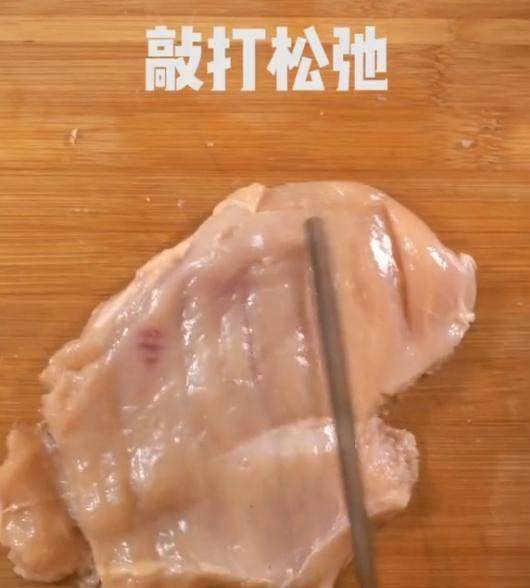 鸡肉用刀背按摩至肉质变软,不服继续打