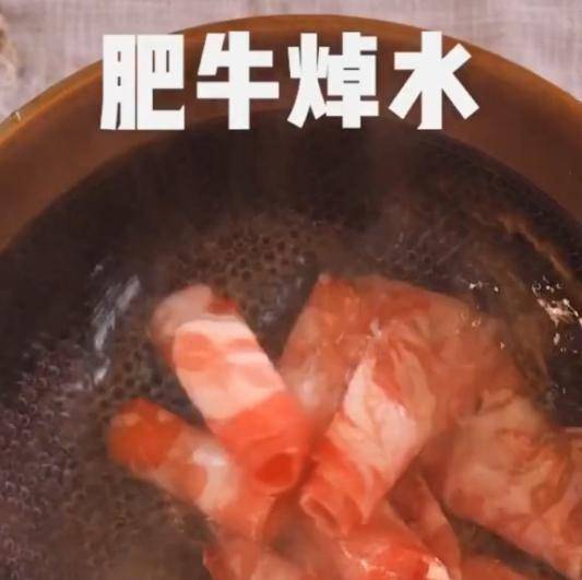 肥牛肉放入锅中焯水,撇去浮沫捞出待用