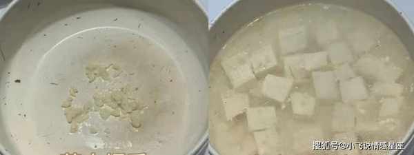 第四步:锅底放少许油(瓶装油或食用油),加入蒜末略炒,加入3小碗水,放入豆腐末。