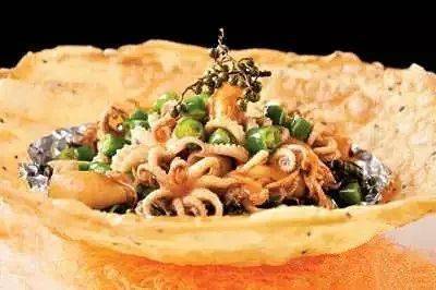 此菜口味上选用自制鲜辣汁调味,鲜辣十足,辣而不燥,十分符合现代人追求口味刺激的特点,区别于单一的辣味,更加复合,便于客人接受;在装盘上采用自制面皮锅盏,不仅起到盛装菜品、使之更加美观的作用,还可以直接佐食,符合现今的菜品盘饰可食用性的潮流。口味与美观、潮流与实用并重,深受顾客欢迎。