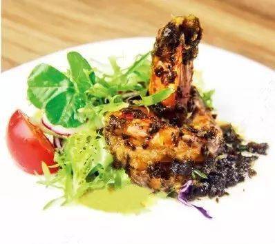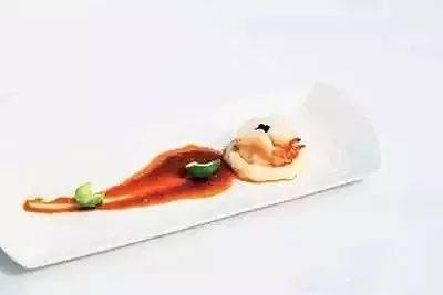 草虾1只(约50克),洗净去壳,将外皮红色薄肉片下,后背开刀,用盐1克腌制,上笼蒸4分钟,放在土豆泥30克上装盘,搭配自制虾酱20克、焯过水的孢子甘蓝2片、黑蟹子3克即可。