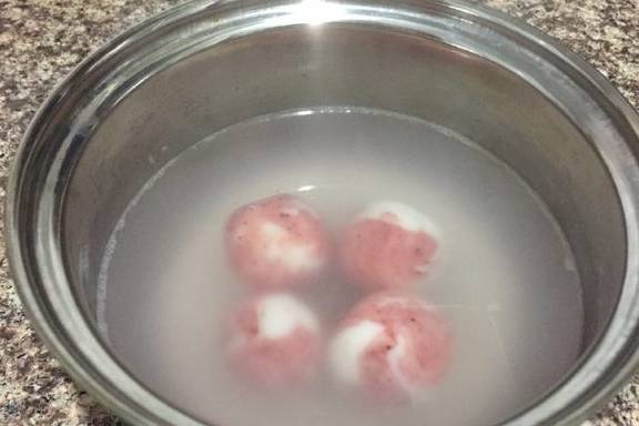 7、锅内水煮开,放入汤圆,煮至浮起即可。