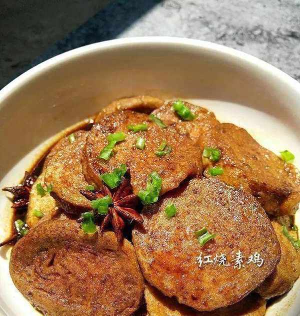 素鸡(我买的和大的一样)切成不厚不薄的片,放入热油中烤至两面发黄,用勺子或筷子切油,捞出,并立即将其浸入准备好的温水中。将所有的素鸡煎几分钟后,素鸡会吸水变大。您可以烤鸡油并将其用于其他炒菜。是的,锅里的油出来了。把鸡里的水和鸡一起放进锅里,控制水量,水多的话不用全部倒掉,开大火,放入八角的部分洋葱,放入适量的生抽,(我刚烤过肉,放一点高汤,出来的浮沫丢掉)加糖,大火,开盖煮至出汤,撒上青洋葱盛入盘中,松软可口