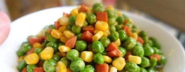 笋处理,去皮,去根,切块,油大火下入笋,加入适量老浸、生浸,改中火翻炒,加入适量水,盖上锅盖,并用小火蒸10分钟,打开锅盖,加入适量白糖,撒上葱花,翻炒均匀,装盘即可食用。小朋友最爱的金玉满堂——豌豆炒玉米